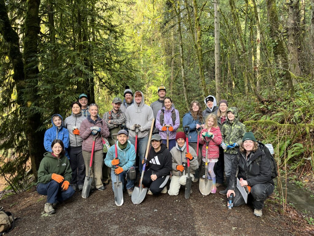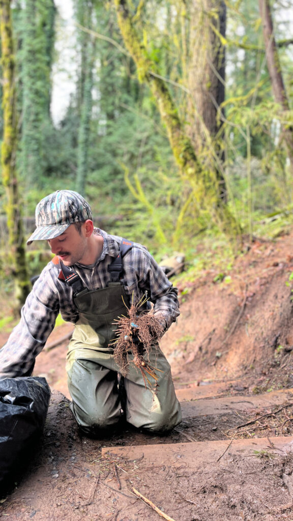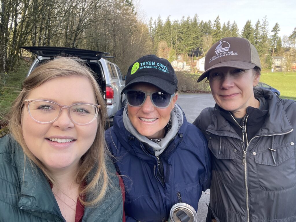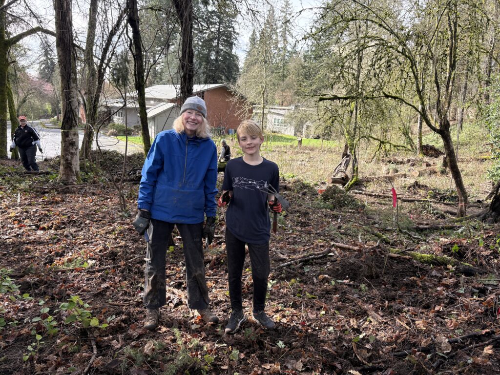 Tryon Creek State Natural Area [above]. Friends of Tryon Creek’s Nanda and Lena, plus the Friends’ Green Leaders cohort led 8 volunteers in planting 100 native plants along the main stem of Tryon Creek.