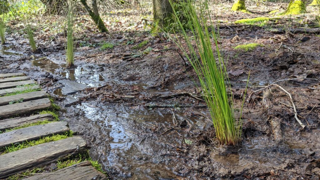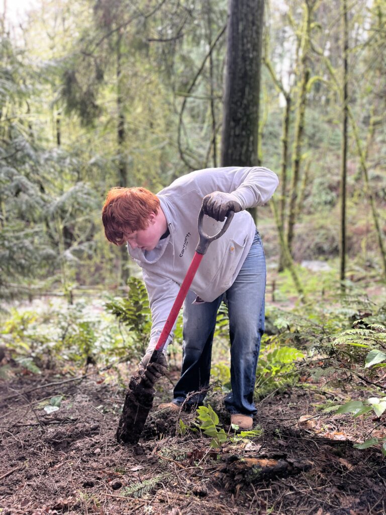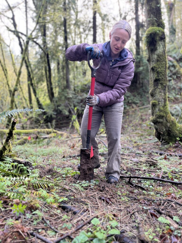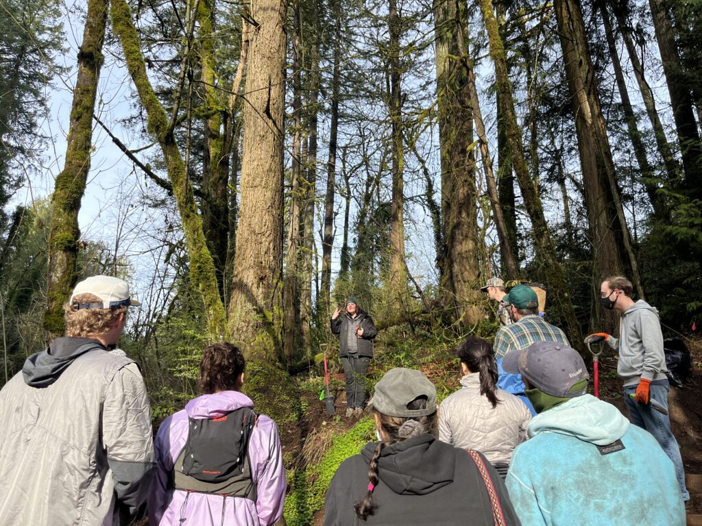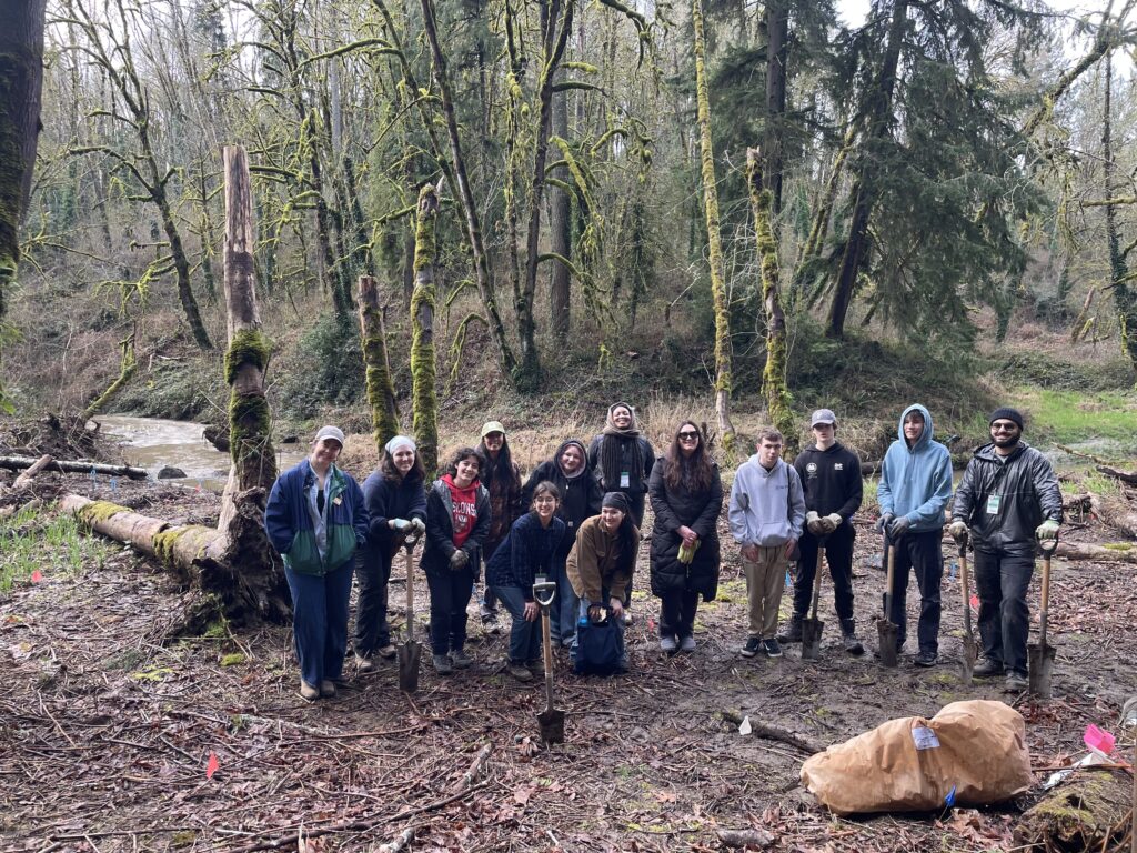 Tryon Creek State Natural Area [above]. Friends of Tryon Creek’s Nanda and Lena, plus the Friends’ Green Leaders cohort led 8 volunteers in planting 100 native plants along the main stem of Tryon Creek.