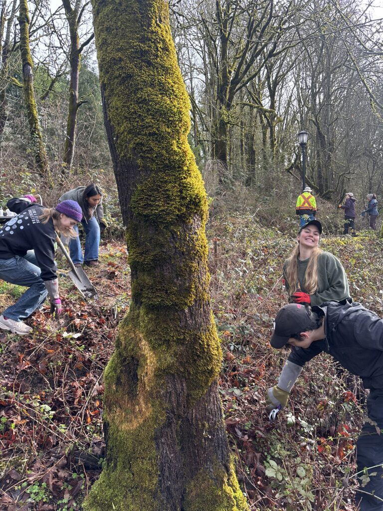 Together we had 145 volunteers, including 48 youth, join us at eight sites spanning the watershed to pull a total of 8,320 square feet of invasively growing plants, free 61 trees and shrubs of ivy, and plant 667 native plants across parks, natural areas, school campuses, and neighborhood greenspaces throughout the Tryon Creek Watershed.