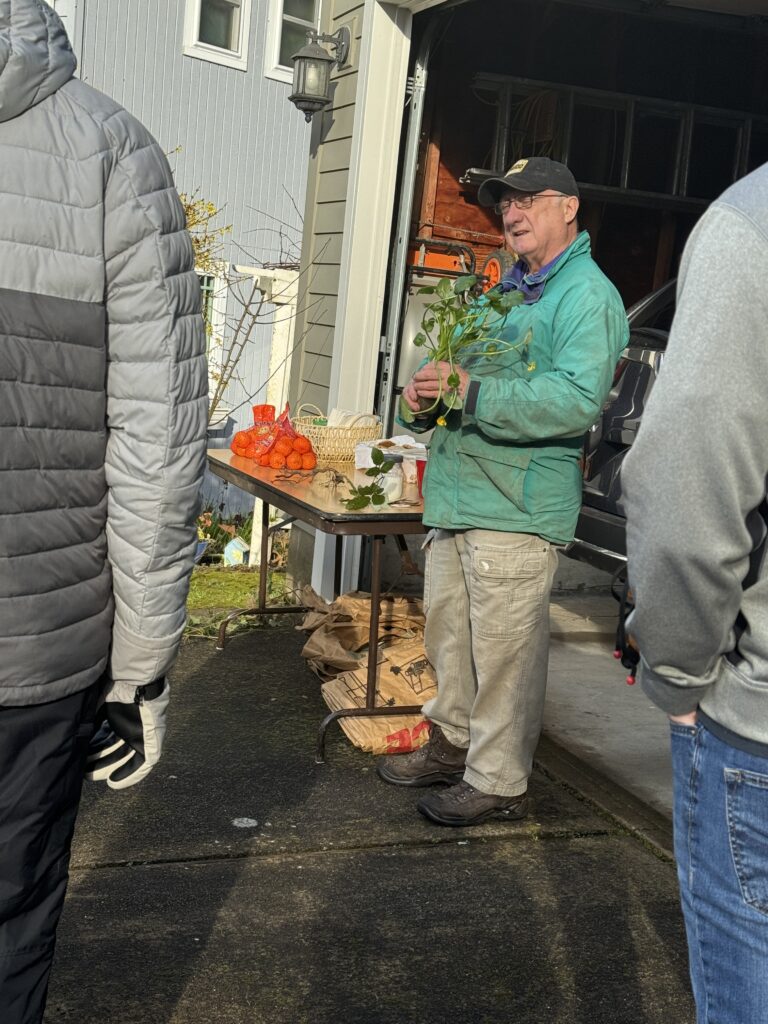 After a morning of working across the watershed, many volunteers gathered at Riverdale High School and were joined by additional community members to hear from our partners, enjoy burritos and bowls from Salsas Locas –a local Latina-owned small business in Portland– plus dig into a truly outstanding community pie table. A big thank you to everyone who contributed a pie and other appreciated snacks.
