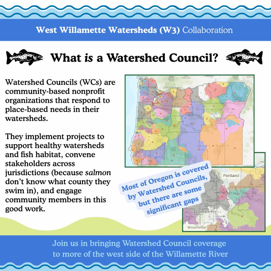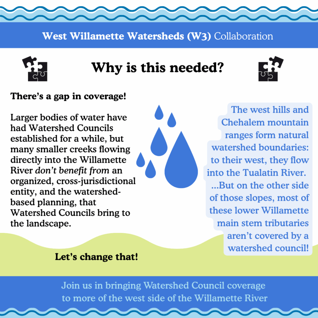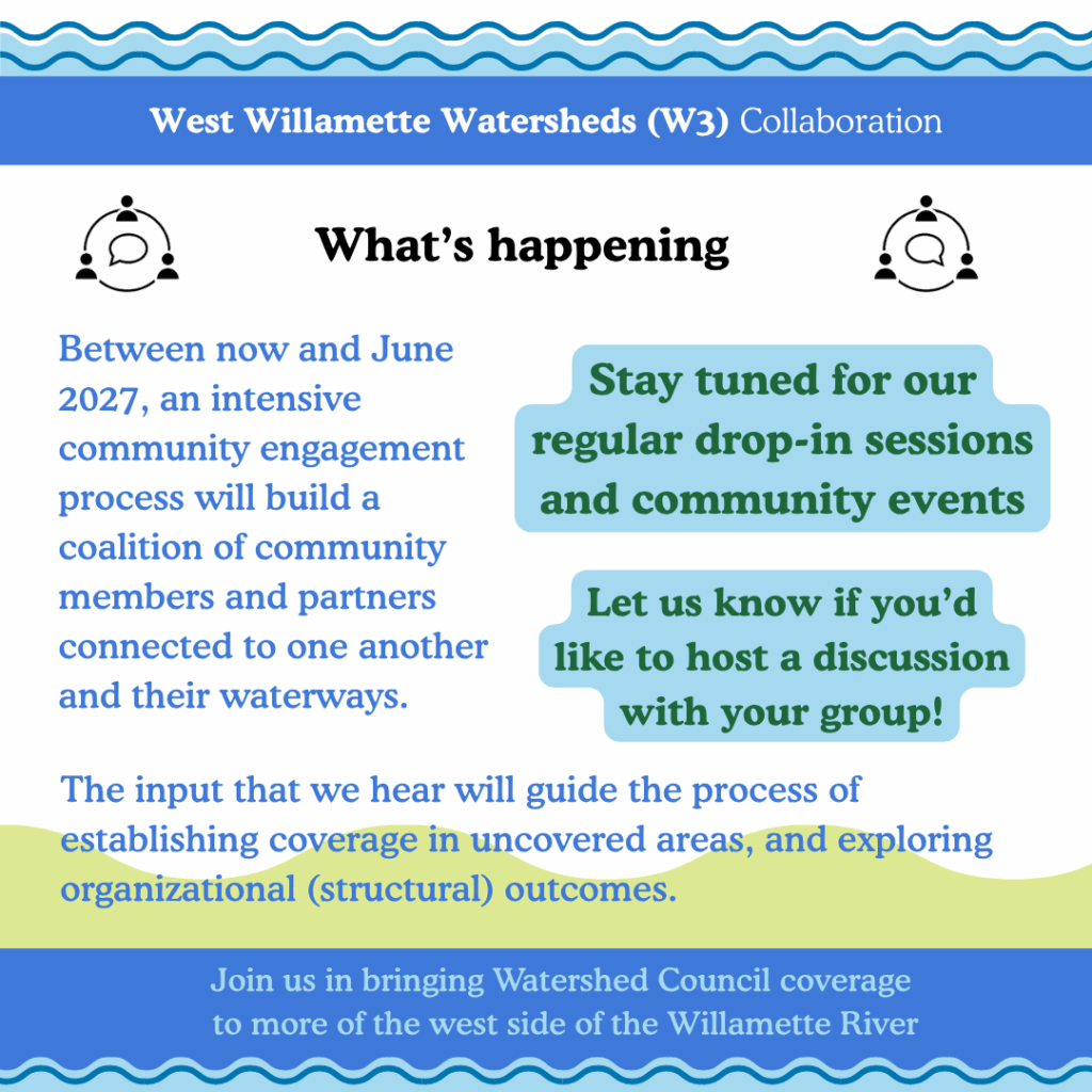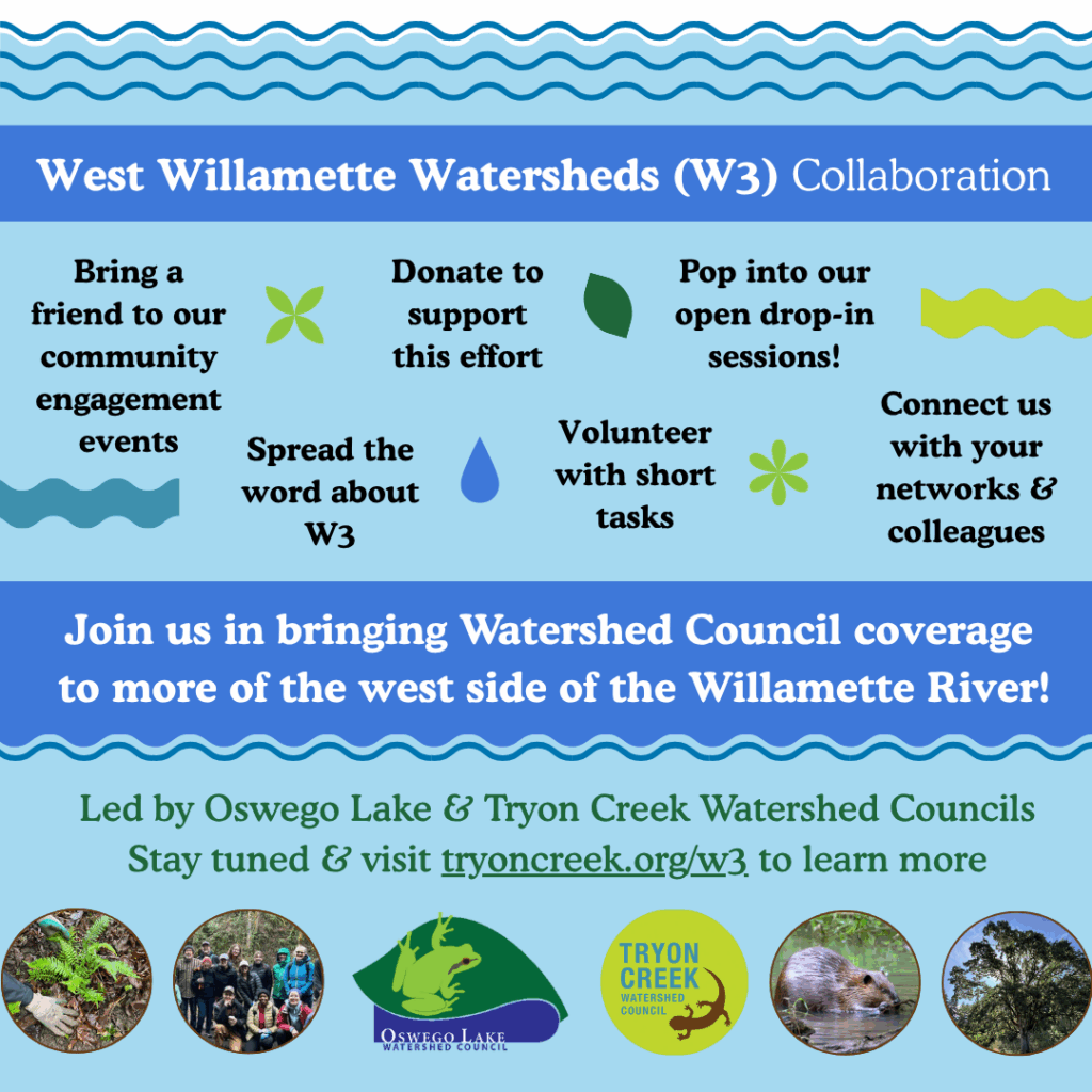 Sign up to stay in the loop via this Google Form: Google Form on West Willamette Watersheds (W3) Collaboration